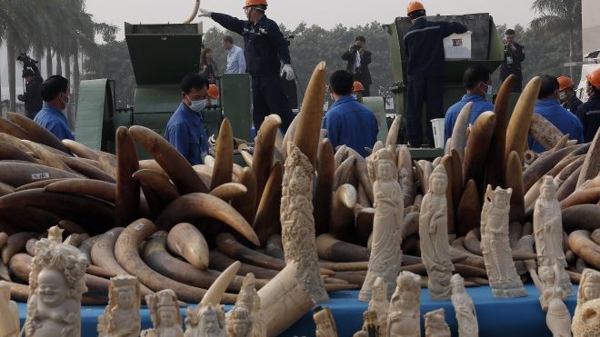 Ngà voi được chính quyền Trung Quốc tiêu hủy công khai ở Quảng Đông