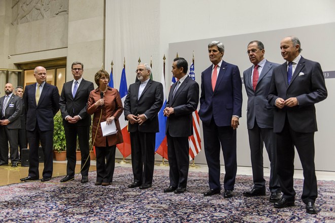 Ngày 24-11-2013, nhóm P5+1 và Ngoại trưởng Iran Mohammad Javad Zarif tại cuộc đàm phán hạt nhân ở Geneva, Thụy Sĩ
