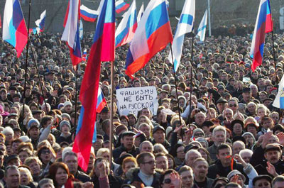 Người biểu tình ủng hộ Nga tại thành phố Sevastopol của Ukraine. |
