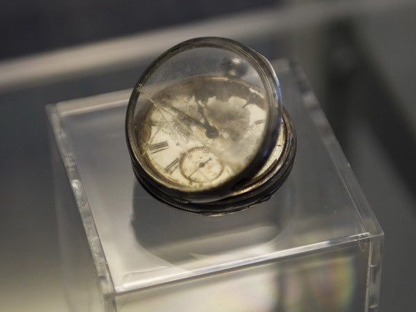 Chiếc đồng hồ bỏ túi được tìm thấy trên tàu Titanic trưng bày tại cuộc họp báo