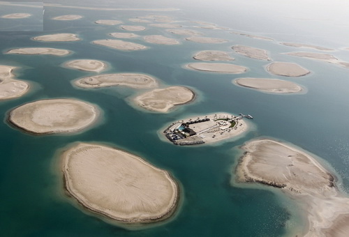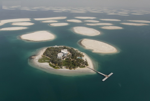 Công trình xây dựng được nhìn thấy trên hai hòn đảo nhân tạo trong dự án Quần đảo Thế giới ở Dubai