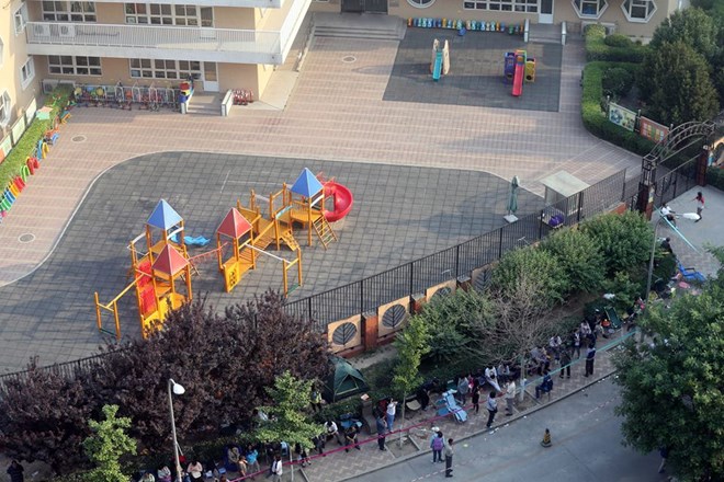 Các phụ huynh phải ngủ tại chỗ để xếp hàng xin cho con vào mẫu giáo.