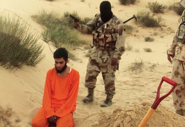 Tay đao phủ đã buộc nạn nhân phải tự đào hố chôn mình rồi bắn chết anh ta. Chúng đã ghi lại màn hành quyết này và tung lên mạng. Trong đoạn video, được ghi hình ở tỉnh Sinai và qua biên tập xử lý hình ảnh rất tốt, người xem có thể thấy một người đàn ông râu ria rậm rạm, mặc đồ màu cam, bị một đao phủ IS bắn chết.