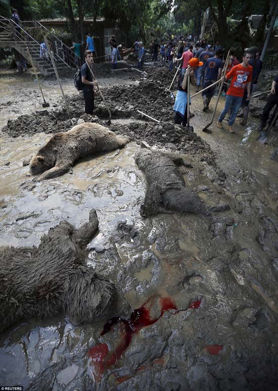 BPO - Sau một trận lũ lớn quét qua thủ đô Gruzia, hàng loạt các loại động vật hoang dã trong sở thú Tblisi đã trốn thoát và chạy hoang khắp đường phố Gruzia. Vì lo sợ những con thú dữ đó gây nguy hại cho người dân, chính quyền thành phố cùng lực lượng chức năng đã triển khai công tác tìm kiếm và lùa các con vật về sở thú. Song một số người đã thẳng tay bắn chết các con vật khiến sáng hôm sau đường phố ngập ngụa xác thú nằm la liệt trong hỗn hợp bùn và máu, gây ra một cảnh tượng đau lòng.