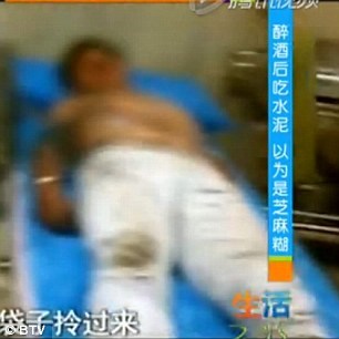 Lúc đó, lực lượng cảnh sát tỉnh Giang Tô, Trung Quốc đã được người dân gần khu vực thông báo rằng một người đàn ông say rượu nặng đã bỏ bê tông vào miệng mình và ăn một cách thản nhiên.