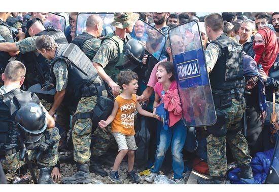 Hai em bé lạc cha mẹ trong dòng người di cư tại khu vực biên giới Hy Lạp - Macedonia