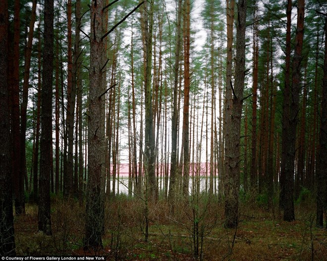 Bức ảnh khác chụp tại Litva có cảnh một nhà kho không cửa sổ nằm trong rừng, được CIA bí mật xây dựng để làm cơ sở giam giữ người.