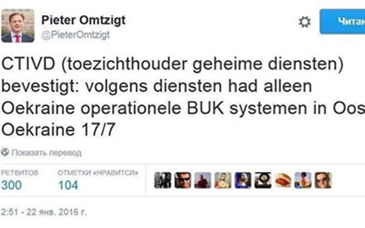 BPO - Tại phiên điều trần kín mới đây về vụ MH17 nổ tung trên bầu trời Donbass, các nghị sĩ Hà Lan đã được thông báo rằng, Ukraine có thể đã là bên bắn hạ chiếc máy bay Boeing của hãng hàng không Malaysia – nghị sĩ Pieter Omtzigt tiết lộ.