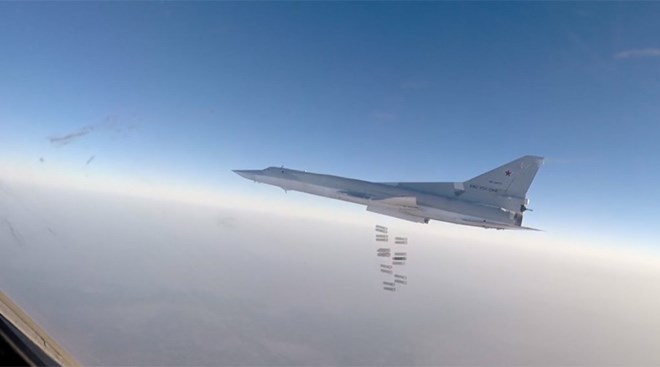 Máy bay ném bom Tu-22 của Nga dội bom vào nhà máy sản xuất vũ khí hóa học của IS (Nguồn: RT)Máy bay sử dụng các loại bom chứa thuốc nổ mạnh, đã không chỉ biến nhà máy trên thành đống gạch vụn mà còn khiến nhiều kẻ bị tiêu diệt.