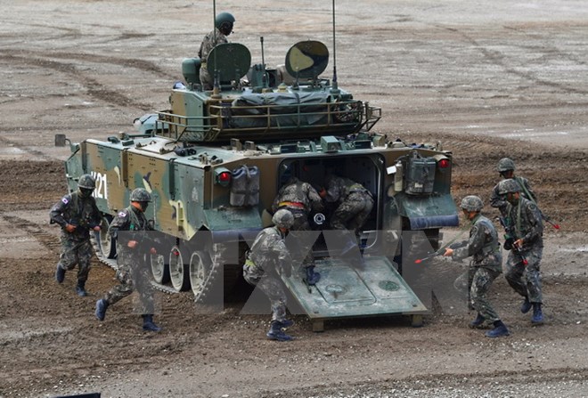 Các binh sỹ Hàn Quốc tham gia diễn tập. (Nguồn: AFP/TTXVN)