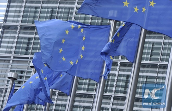 Cờ của Liên minh châu Âu tại trụ sở của EU ở Brussels của Bỉ. (Nguồn: Xinhua)