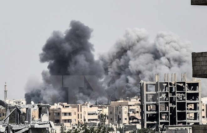 Khói bốc lên sau một cuộc không kích ở Raqqa, Syria. /(Nguồn: AFP/TTXVN)