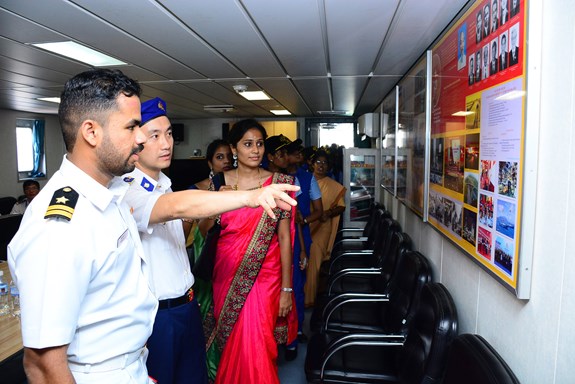 Đại biểu các cơ quan, trường học tại Chennai tham quan phòng Hồ Chí Minh trên tàu CSB 8001.