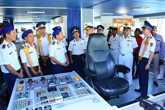 Đại biểu Bộ tư lệnh Vùng phía Đông ICG tham quan buồng lái tàu CSB 8001.