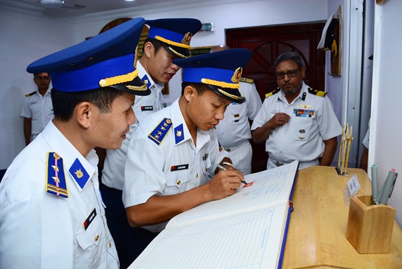 Ông Phạm Sanh Châu, Đại sứ đặc mệnh toàn quyền Việt Nam tại Cộng hòa Ấn Độ đến thăm và ghi vào sổ lưu niệm tàu CSB 8001.