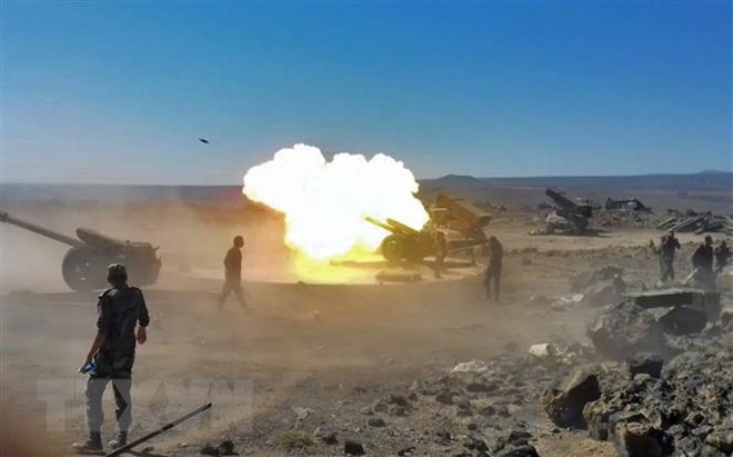 Binh sỹ Syria trong chiến dịch chống IS tại tỉnh Sweida ngày 5-9-2018