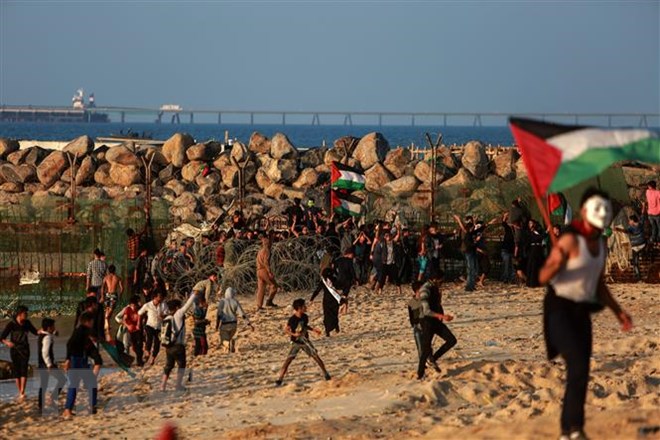 Xung đột giữa người biểu tình Palestine và binh sỹ Israel ở phía bắc Dải Gaza ngày 19-11-2018. (Ảnh: THX/ TTXVN)