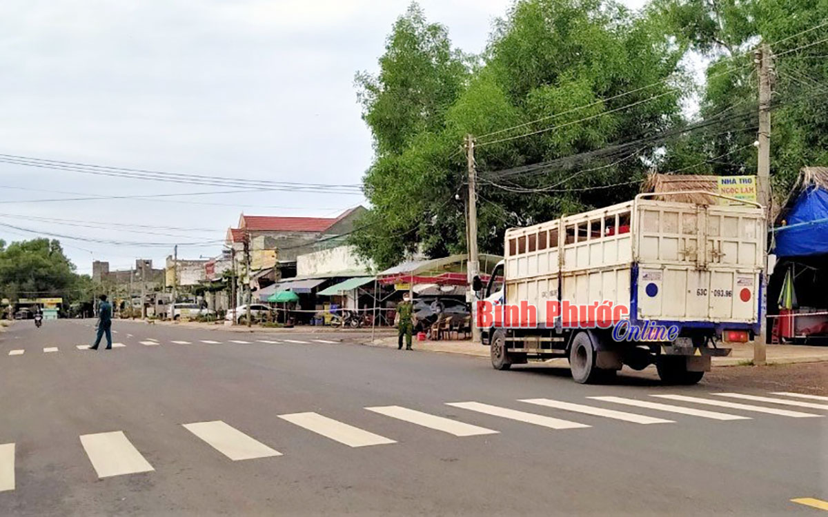 Các phương tiện vận tải những mặt hàng thiết phục vụ nhu cầu của nhân dân trong ngày giãn cách nhưng phải đảm bảo phòng chống dịch. Trong ảnh, lực lượng Công an phường Tiến Thành, TP. Đồng Xoài kiểm tra phương tiện lưu thông trên địa bàn phường trong những ngày thực hiện Chỉ thị 16