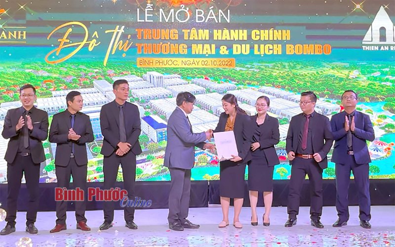 Sức hút ngày mở bán dự án Khu đô thị Thái Thành - Bom BoBPO - Hôm nay 2-10-2022, tại nhà hàng Adela (TP. Đồng Xoài), Công ty cổ phần kinh doanh địa ốc Thiên An Holdings tổ chức lễ mở bán dự án Khu đô thị trung tâm hành chính - thương mại - dịch vụ và du lịch Thái Thành – Bom Bo. Sự kiện thu hút hơn 400 khách hàng đến tìm hiểu dự án.