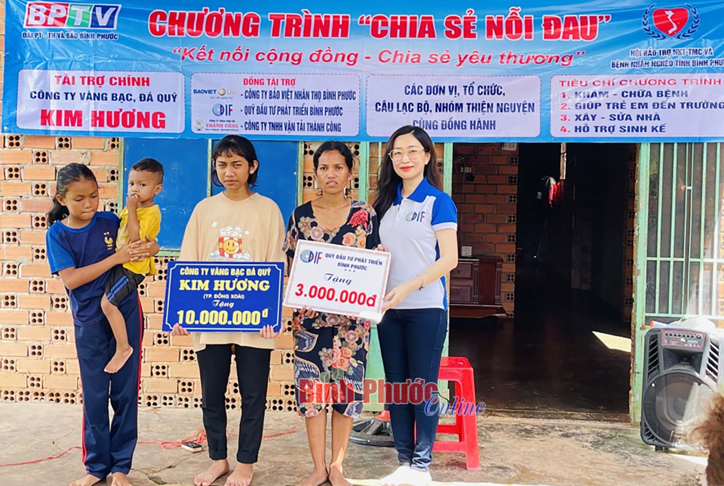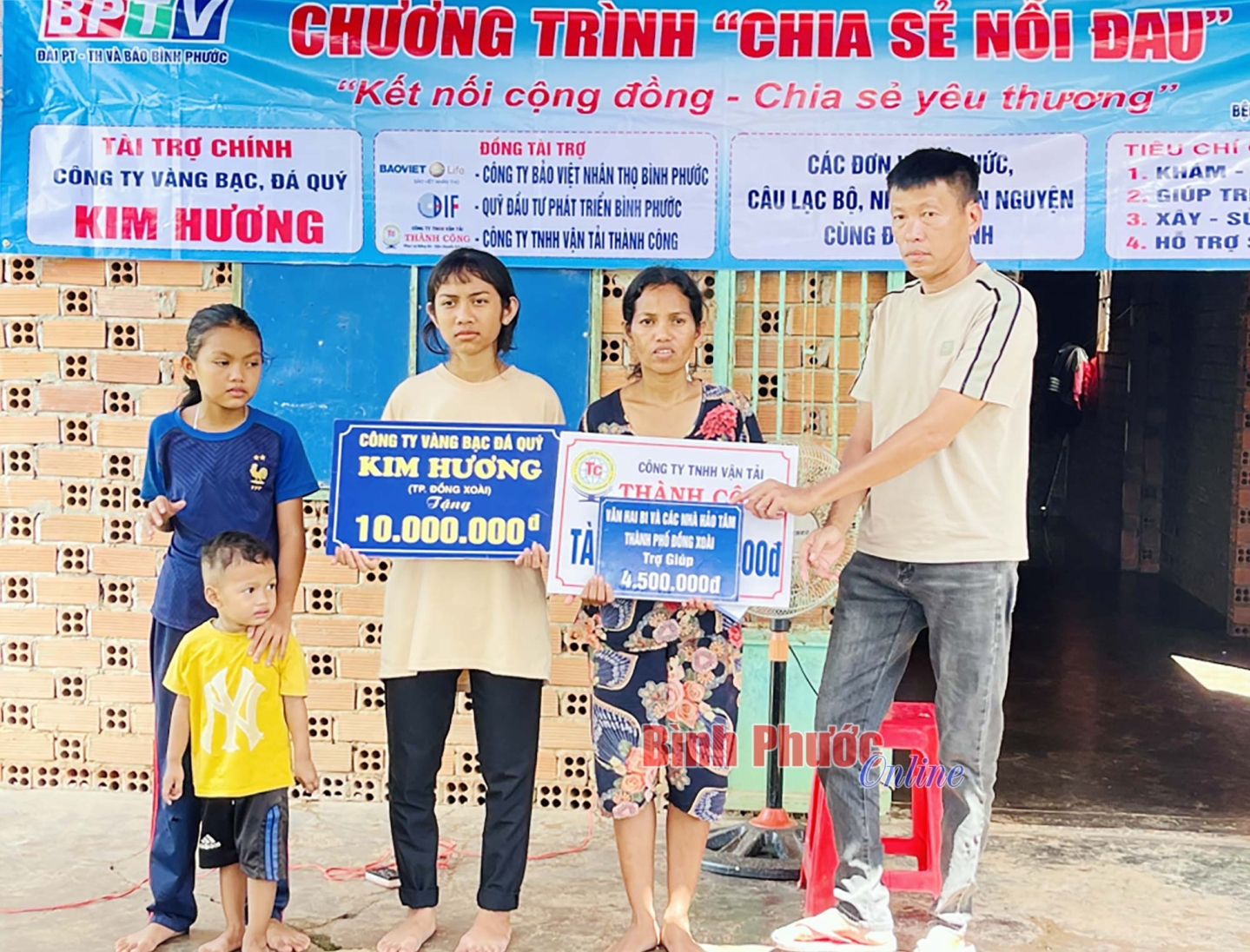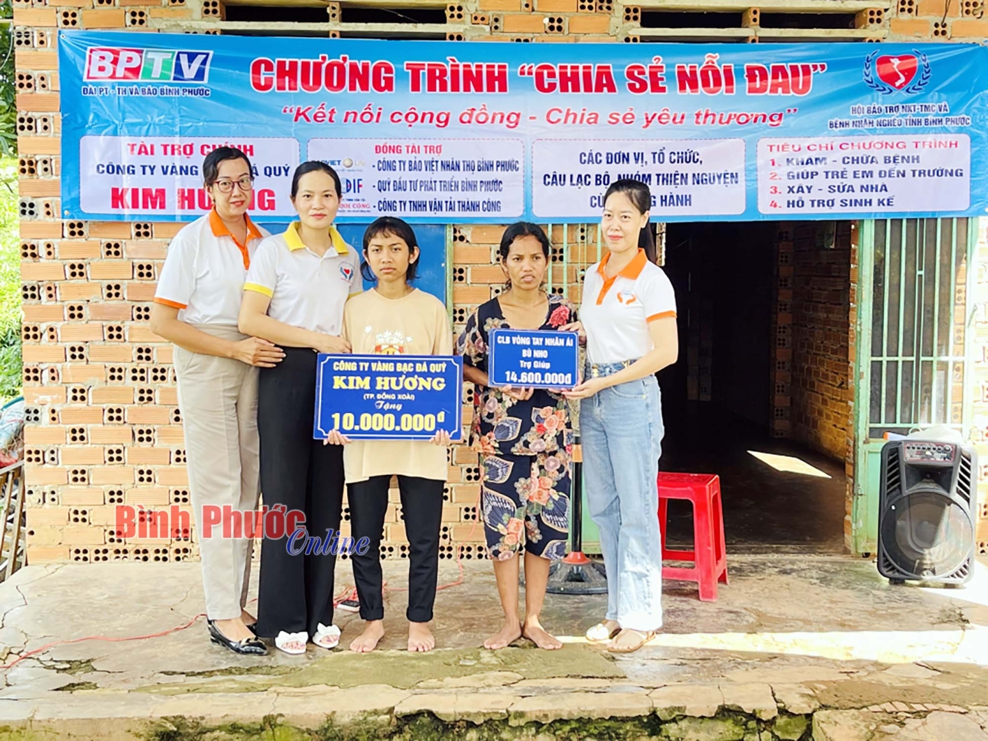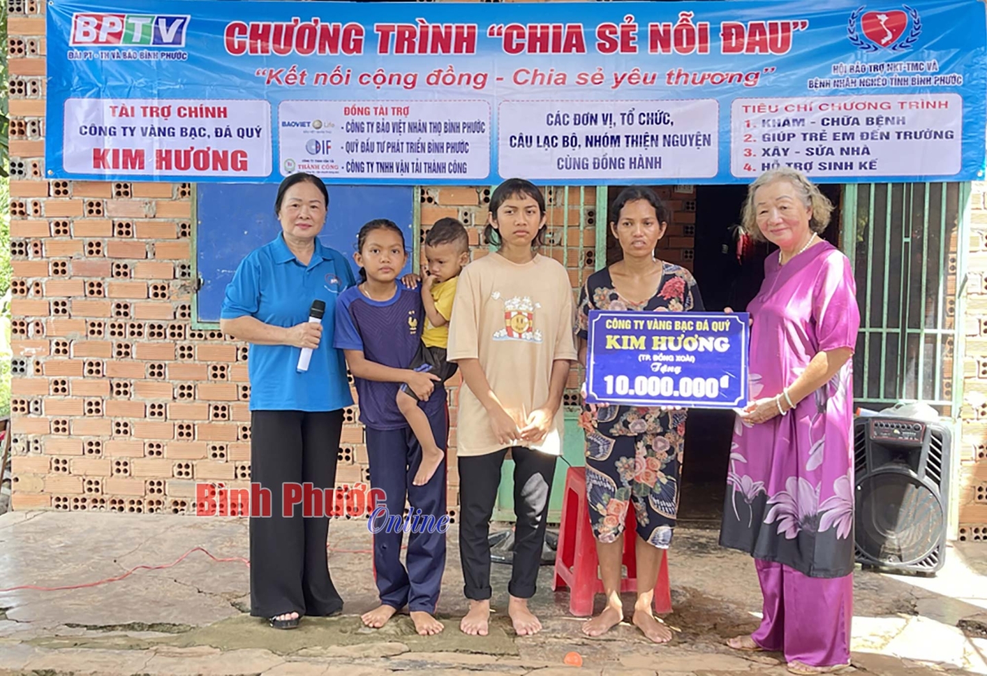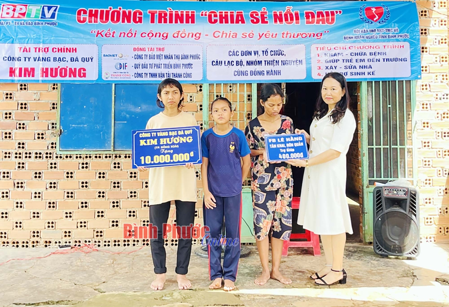 Xót xa, thương cảm với gia đình chị, chương trình “Chia sẻ nỗi đau” đã nhanh chóng kết nối và trao tặng gia đình số tiền 126 triệu đồng. Chương trình thống nhất dành toàn bộ số tiền chữa bệnh và lo cho các con chị Hiền ăn học. Nhận được số tiền quá lớn trong lúc ngặt nghèo, chị Hiền xúc động chia sẻ: Không có nỗi đau nào bằng ngày ngày phải chứng kiến cảnh mẹ già, con thơ đau đớn vì bệnh tật mà không có tiền chạy chữa. Tôi vô cùng biết ơn chương trình đã đến và trợ giúp gia đình tôi trong lúc bế tắc. Với số tiền này, tôi có thêm động lực cố gắng lo cho con cái chữa bệnh và học tập.