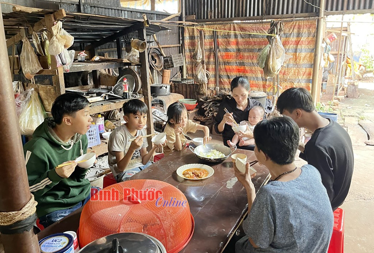 Cả gia đình 7 người bên mâm cơm đạm bạc