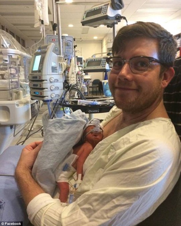 Anh Dylan Benson, 32 tuổi, cha của cậu bé, đã hết sức đau lòng khi chứng kiến người vợ yêu quí Robyn phải nằm liệt trên giường bệnh vì chứng chết não khi đang mang thai đứa con 22 tuần tuổi.