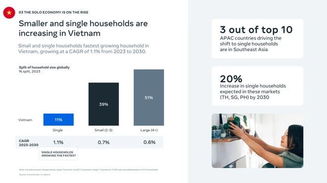 Xu hướng tăng trưởng mạnh mẽ của hộ gia đình nhỏ và độc thân ở Việt Nam. (Nguồn: Meta)