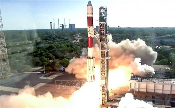 Tên lửa đẩy mang theo các vệ tinh trong sứ mệnh Proba-3 của Cơ quan Vũ trụ châu Âu (ESA) rời bệ phóng tại Ấn Độ, ngày 5-12-2024. Ảnh: ANI/TTXVN