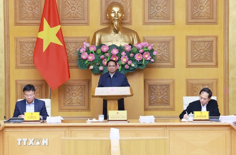 Thủ tướng Phạm Minh Chính chủ trì Phiên họp thứ tư của Ban Chỉ đạo rà soát, xử lý vướng mắc trong hệ thống văn bản quy phạm pháp luật. (Ảnh: Dương Giang/TTXVN)