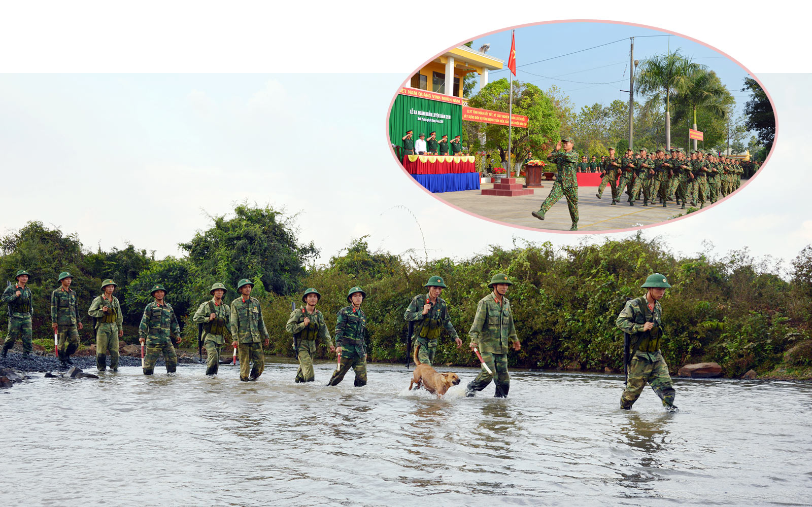 Cán bộ, chiến sĩ lực lượng vũ trang tỉnh ra quân huấn luyện (ảnh nhỏ) và tuần tra bảo vệ các mục tiêu trọng điểm dịp Đại hội Đảng bộ tỉnh Bình Phước lần thứ XI, nhiệm kỳ 2020-2025 - Ảnh: Văn Minh - Quang Thạch
