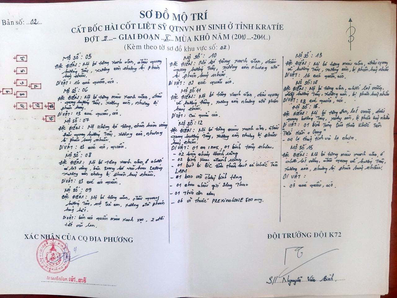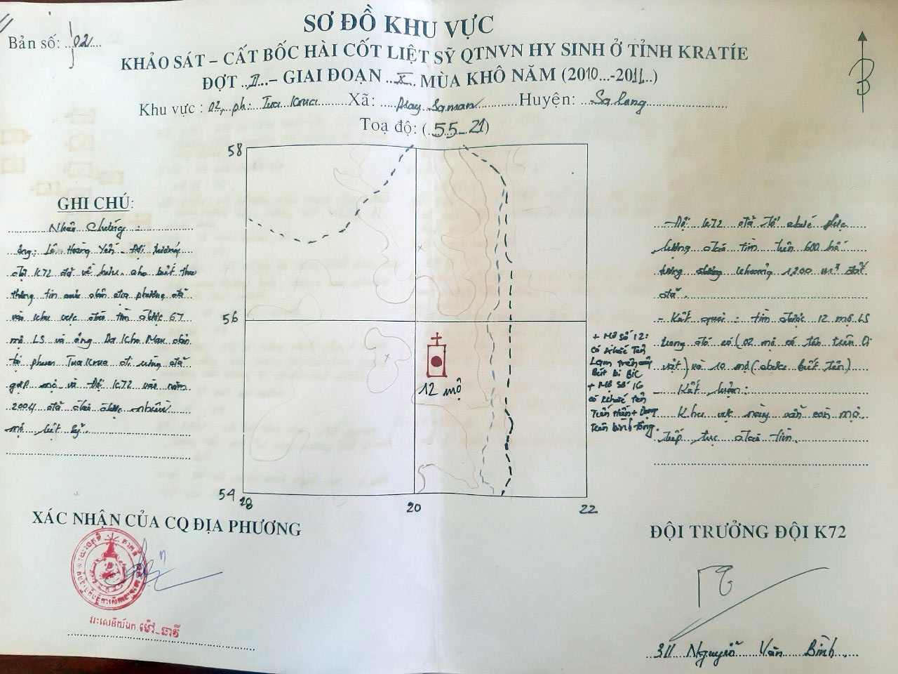 Tại khu vực này, Đội K72, Bộ CHQS tỉnh đã quy tập được 12 mộ liệt sĩ. Thông tin mộ liệt sĩ do ông Da Kha Mau, ngụ phum Tua Krua, xã Pray Sa Man, huyện Sa Lông, tỉnh Kratie (Vương quốc Campuchia) cung cấp.