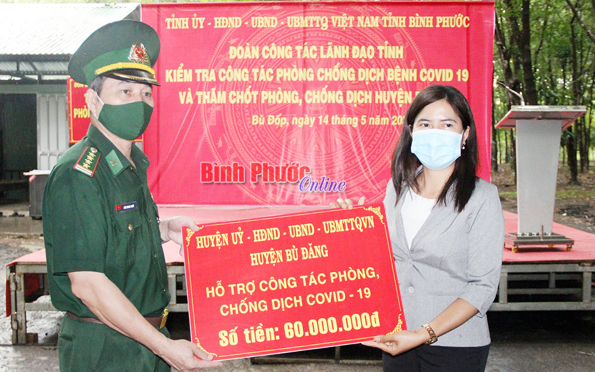 Huyện Bù Đăng hỗ trợ Bộ đội biên phòng tỉnh chống dịch 60 triệu đồng