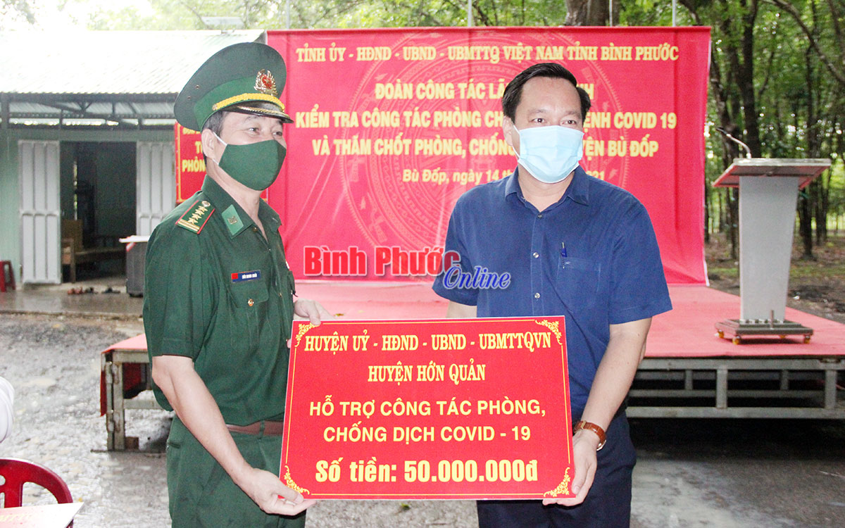 Huyện Hớn Quản hỗ trợ Bộ đội biên phòng phòng, chống dịch 50 triệu đồng