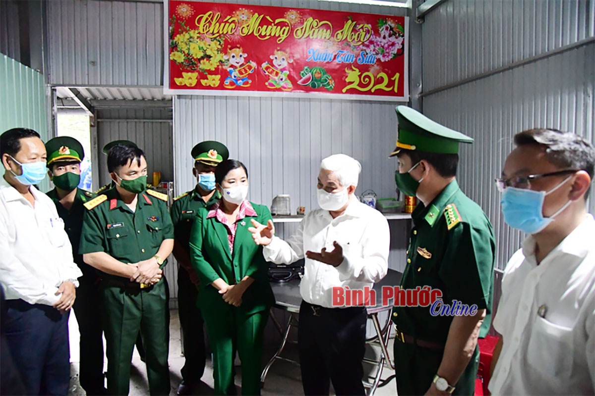 Ủy viên Trung ương Đảng, Bí thư Tỉnh ủy, Trưởng đoàn đại biểu Quốc hội tỉnh Nguyễn Văn Lợi và Phó bí thư Tỉnh ủy, Chủ tịch UBND tỉnh Trần Tuệ Hiền cùng đại diện các đơn vị đến thăm tổ chốt số 1, Đồn biên phòng Tân Thành ở xã Tân Thành, huyện Bù Đốp
