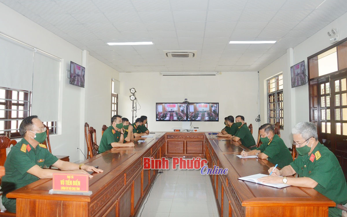 Đại tá Vũ Tiến Điền, Chính ủy Bộ CHQS tỉnh Bình Phước chủ trì tại điểm cầu Bình Phước