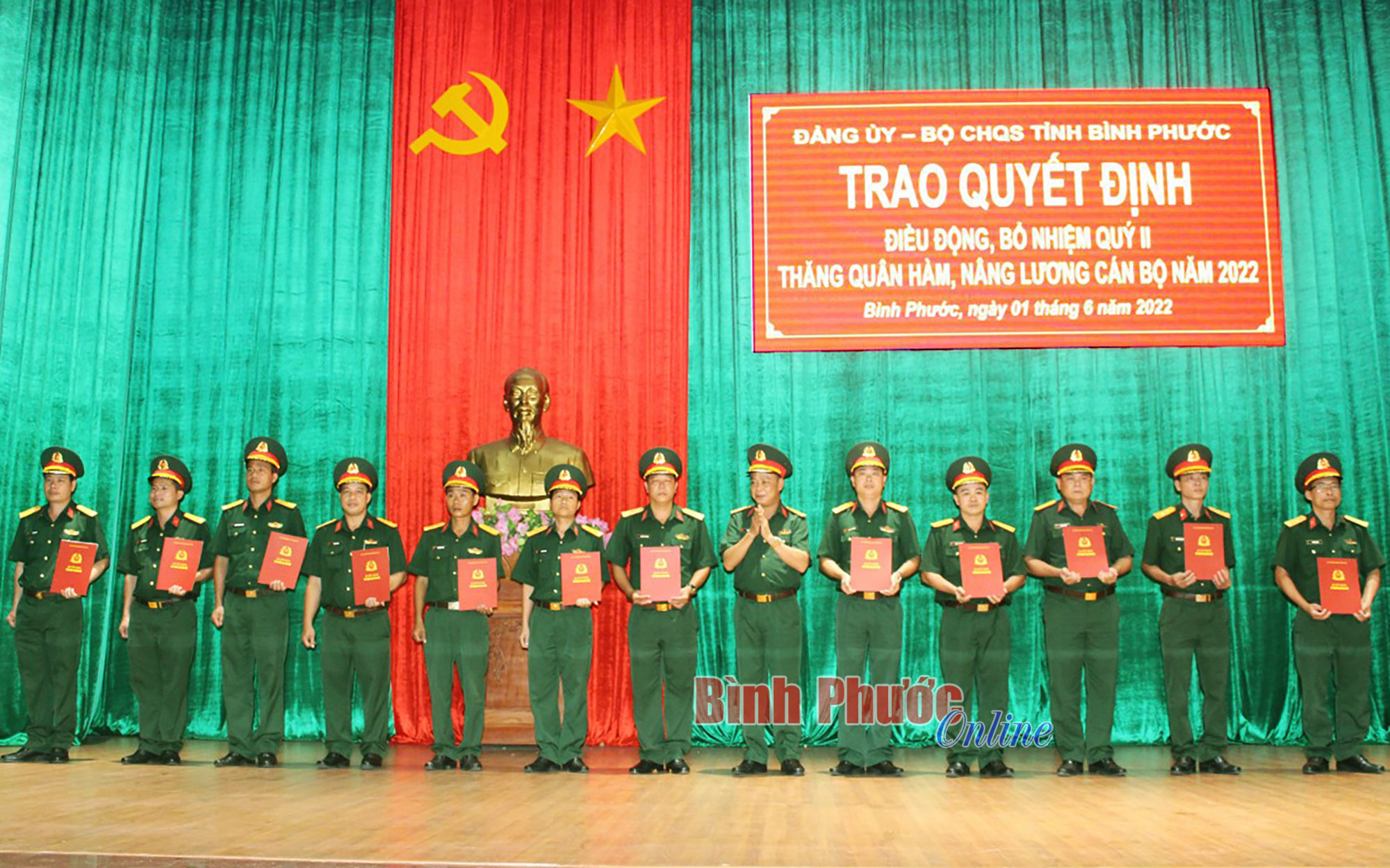 Tại lễ trao quyết định, Đại tá Vũ Tiến Điền, Tỉnh ủy viên, Phó bí thư Thường trực Đảng ủy Quân sự tỉnh, Chính ủy Bộ CHQS tỉnh đã trao quyết định thăng quân hàm từ Thiếu tá lên Trung tá cho 17 đồng chí, thăng quân hàm từ Đại úy lên Thiếu tá cho 39 đồng chí, từ Thượng úy lên Đại úy 5 đồng chí, Trung úy lên Thượng úy 14 đồng chí, Thiếu úy lên Trung úy 19 đồng chí. Nâng lương Thiếu tá (lần 1) cho 2 sĩ quan, nâng lương QNCN cho 2 đồng chí, nâng phụ cấp thâm niên vượt khung cho 3 QNCN. Đặc biệt năm 2022, Thường vụ Đảng ủy Quân khu đã quyết định thăng quân hàm trước niên hạn cho 3 đồng chí là Chiến sĩ thi đua 3 năm liên tiếp và 24 đồng chí có thành tích đặc biệt xuất sắc trong công tác phòng, chống dịch Covid-19. Dịp này, Đảng ủy, Bộ CHQS tỉnh trao quyết định điều động cho 9 đồng chí là cán bộ trong LLVT tỉnh.