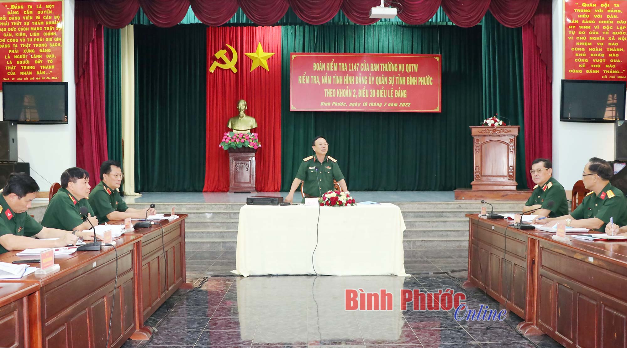 Qua làm việc trực tiếp với tổ chức đảng trực thuộc, kiểm tra hồ sơ và nghe báo cáo của Ban Thường vụ Đảng ủy Quân sự tỉnh, đoàn kiểm tra nhận xét: Đảng ủy Quân sự tỉnh Bình Phước đã quán triệt, thực hiện nghiêm túc nghị quyết, chỉ thị, quy định của Đảng về nhiệm vụ quân sự, quốc phòng hằng năm. Lãnh đạo, chỉ đạo duy trì nghiêm chế độ sẵn sàng chiến đấu, luyện tập thường xuyên các phương án tác chiến; có nhiều giải pháp toàn diện trong nâng cao chất lượng huấn luyện, diễn tập, hội thi, hội thao các cấp đạt kết quả cao. Vai trò lãnh đạo, chỉ đạo của cấp ủy, chỉ huy các cấp được phát huy; chất lượng sinh hoạt đảng và năng lực lãnh đạo của các tổ chức đảng ngày càng nâng lên. Công tác kiểm tra, giám sát được triển khai thực hiện nghiêm túc, đúng quy trình, sát với chức năng, nhiệm vụ của tổ chức đảng và chức trách, nhiệm vụ đảng viên; chấp hành nghiêm nguyên tắc tập trung dân chủ, phát huy sức mạnh của tập thể, nội bộ đoàn kết, thống nhất cao; đơn vị hoàn thành tốt mọi nhiệm vụ được giao.