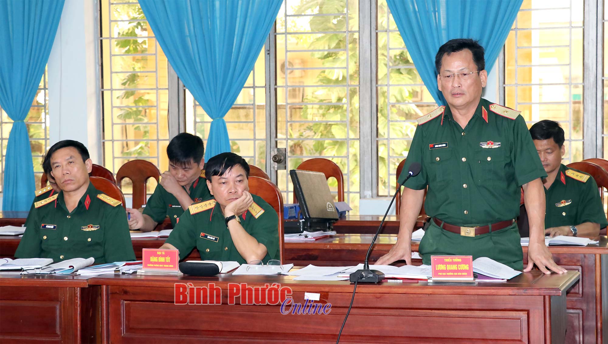 Thiếu tướng Lương Quang Cương, Phó cục trưởng Cục Dân quân tự vệ Bộ Quốc phòng phát biểu tại buổi làm việc