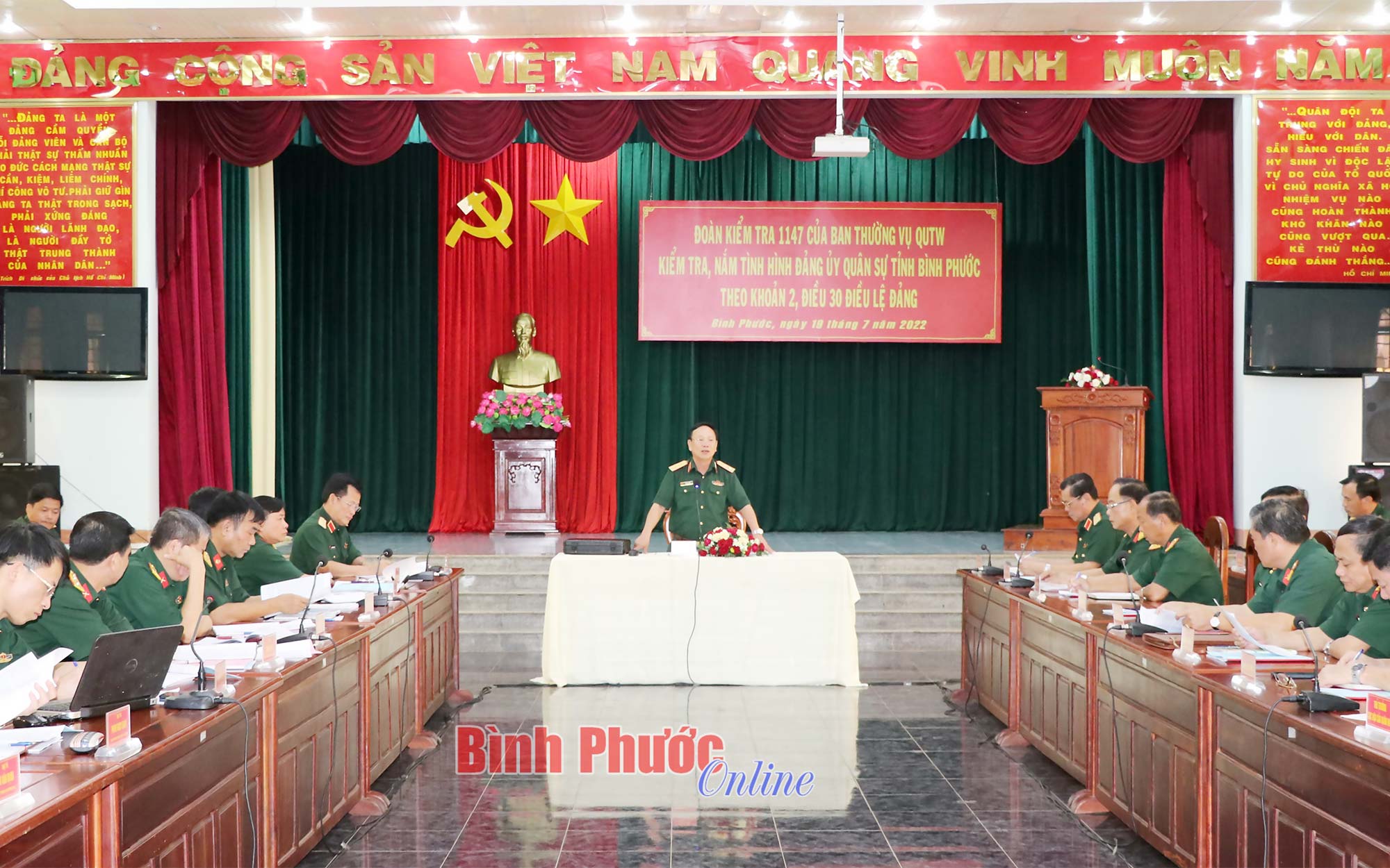 Trung tướng Lê Ngọc Nam, Phó chủ nhiệm Ủy ban Kiểm tra Quân ủy Trung ương chủ trì buổi làm việc với Đảng ủy Quân sự tỉnh Bình Phước