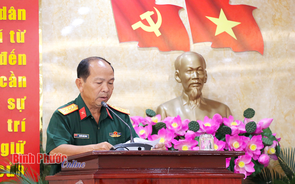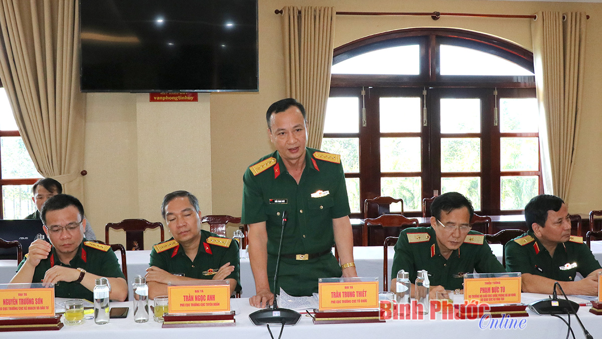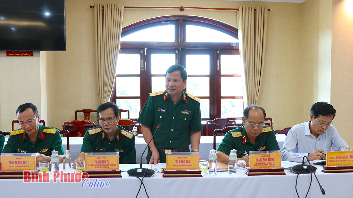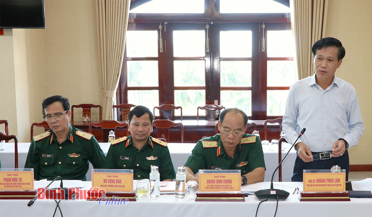 Phát biểu kết luận buổi làm việc, Trung tướng, PGS.TS Nguyễn Văn Bạo, Giám đốc Học viện Chính trị, Bộ Quốc phòng khẳng định: Bình Phước có vị trí chiến lược về kinh tế, chính trị, quốc phòng - an ninh của khu vực Đông Nam Bộ, là cửa ngõ giao lưu về kinh tế, văn hóa của khu vực Đông Nam Bộ và Vương quốc Campuchia. Trung tướng, PGS.TS Nguyễn Văn Bạo ghi nhận và đánh giá cao sự quan tâm của tỉnh đối với việc xây dựng, củng cố thế trận quốc phòng toàn dân, thế trận an ninh nhân dân; phối hợp chặt chẽ các lực lượng để thực hiện nhiệm vụ phát triển kinh tế - xã hội, bảo đảm quốc phòng - an ninh; xây dựng khu vực phòng thủ, xây dựng các tiềm lực về quốc phòng - an ninh. Thực hiện tốt công tác giáo dục, nâng cao ý thức nhân dân về nhiệm vụ bảo vệ Tổ quốc trong tình hình mới.