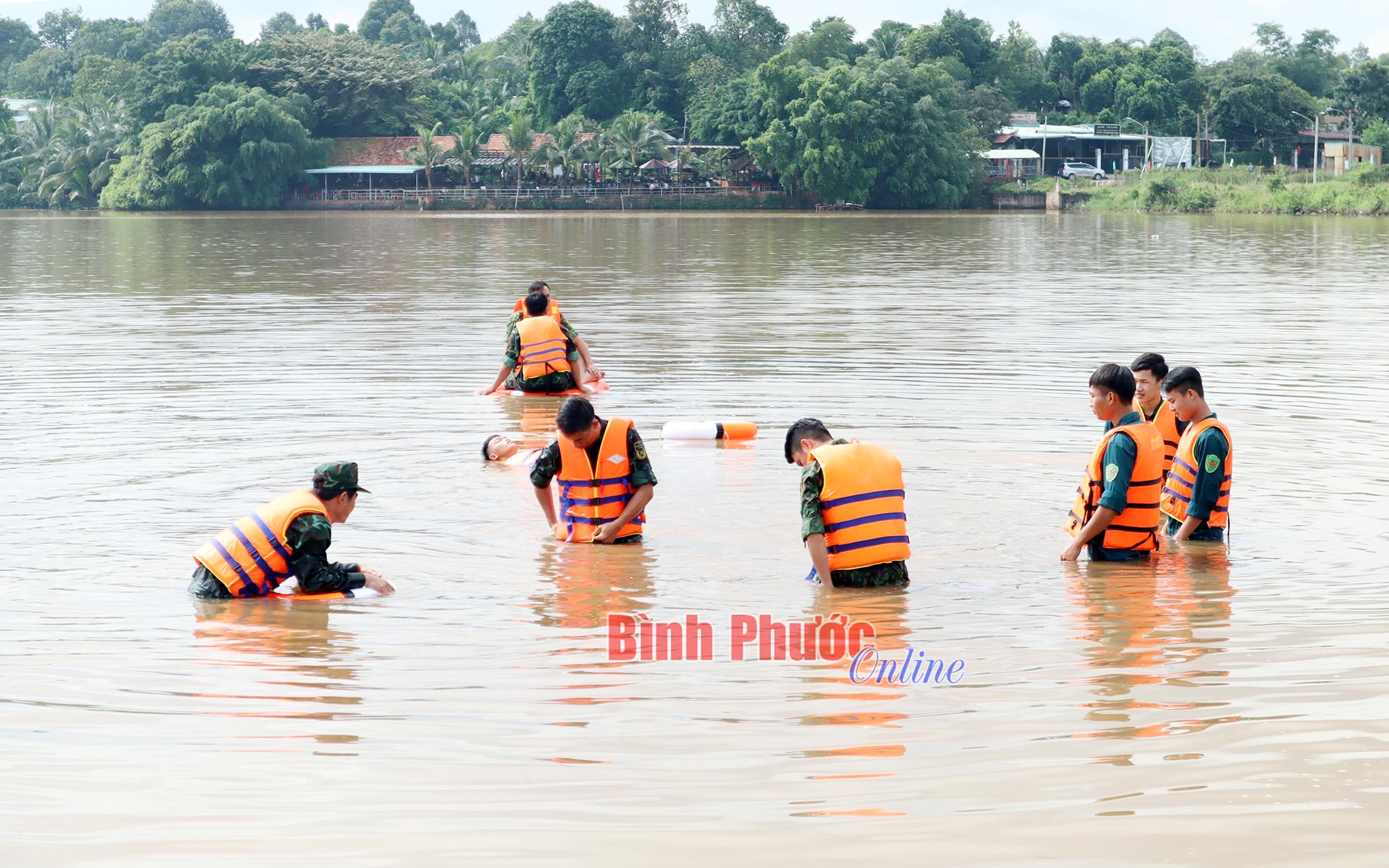 Luyện tập các động tác sử dụng phao cứu sinh và bơi tìm kiếm cứu hộ, cứu nạn