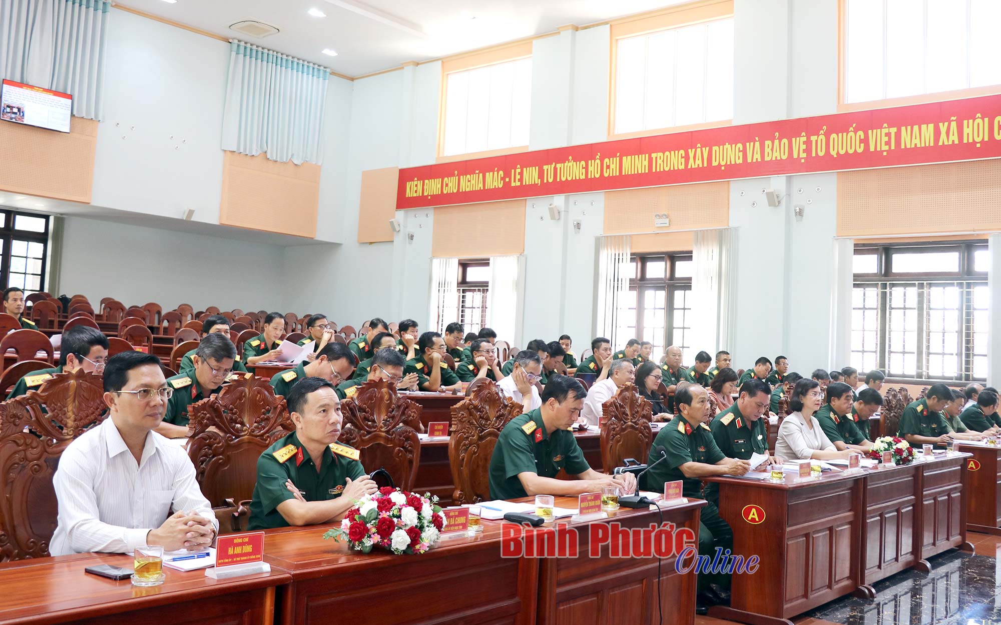 Thiếu tướng Đặng Văn Lẫm, Ủy viên Đảng ủy Quân khu, Phó Tư lệnh Quân khu 7; Ủy viên Ban Thường vụ Tỉnh ủy, Phó Chủ tịch UBND tỉnh Trần Tuyết Minh; lãnh đạo các huyện, thị, thành ủy, Binh đoàn 16, Công an tỉnh tham dự hội nghị.