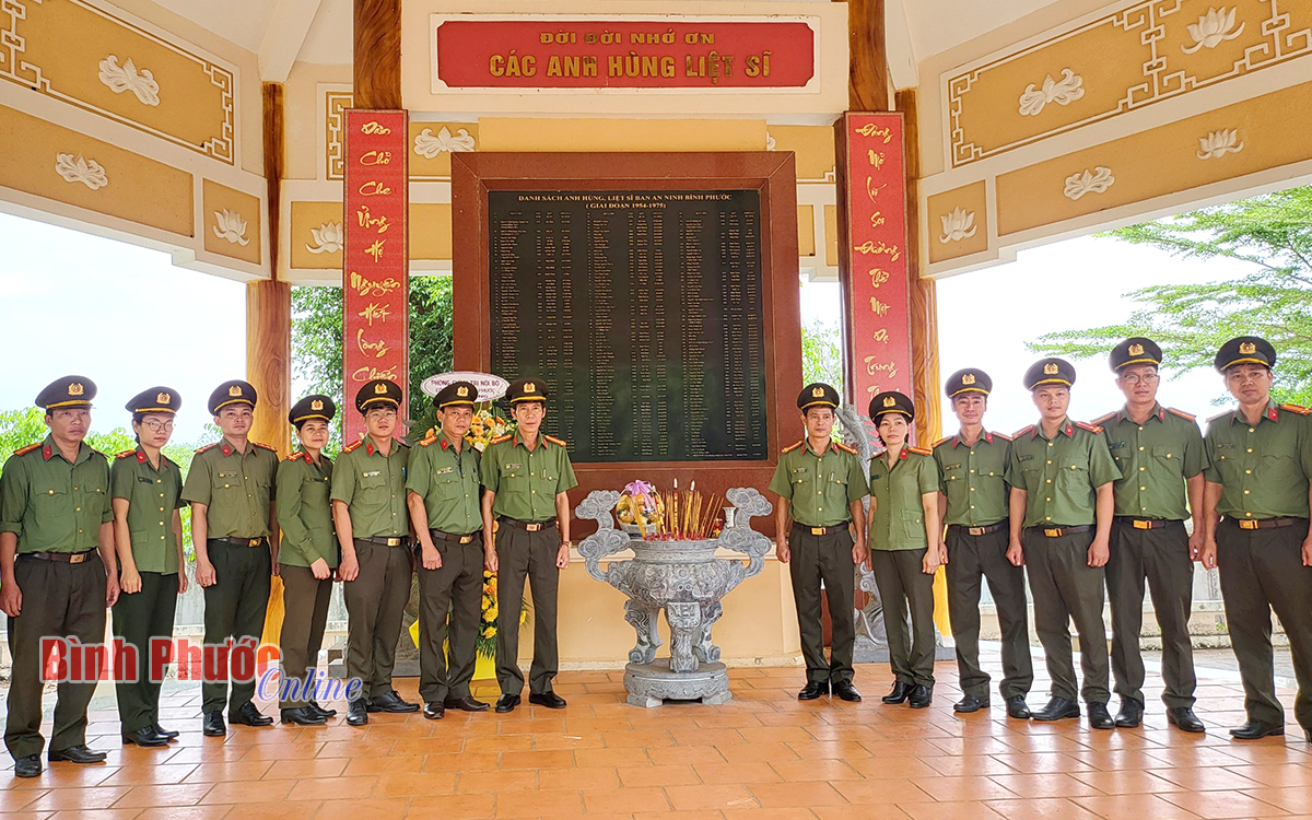 Hôm qua (9-5), cán bộ, chiến sĩ Phòng An ninh chính trị nội bộ Công an tỉnh về nguồn tại Căn cứ Sở Nhỏ - Ban An ninh Bình Phước, xã Thanh Hòa, huyện Bù Đốp