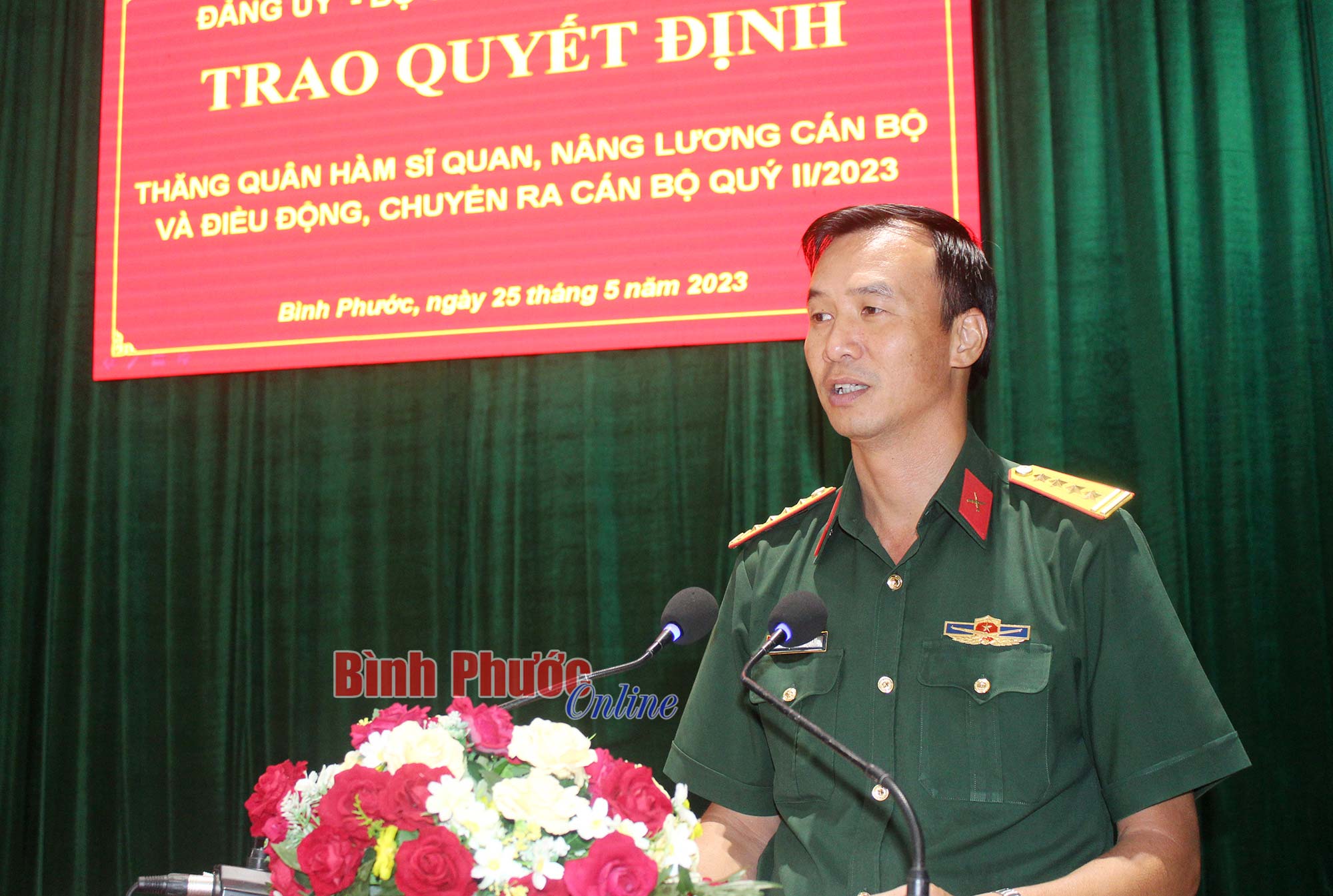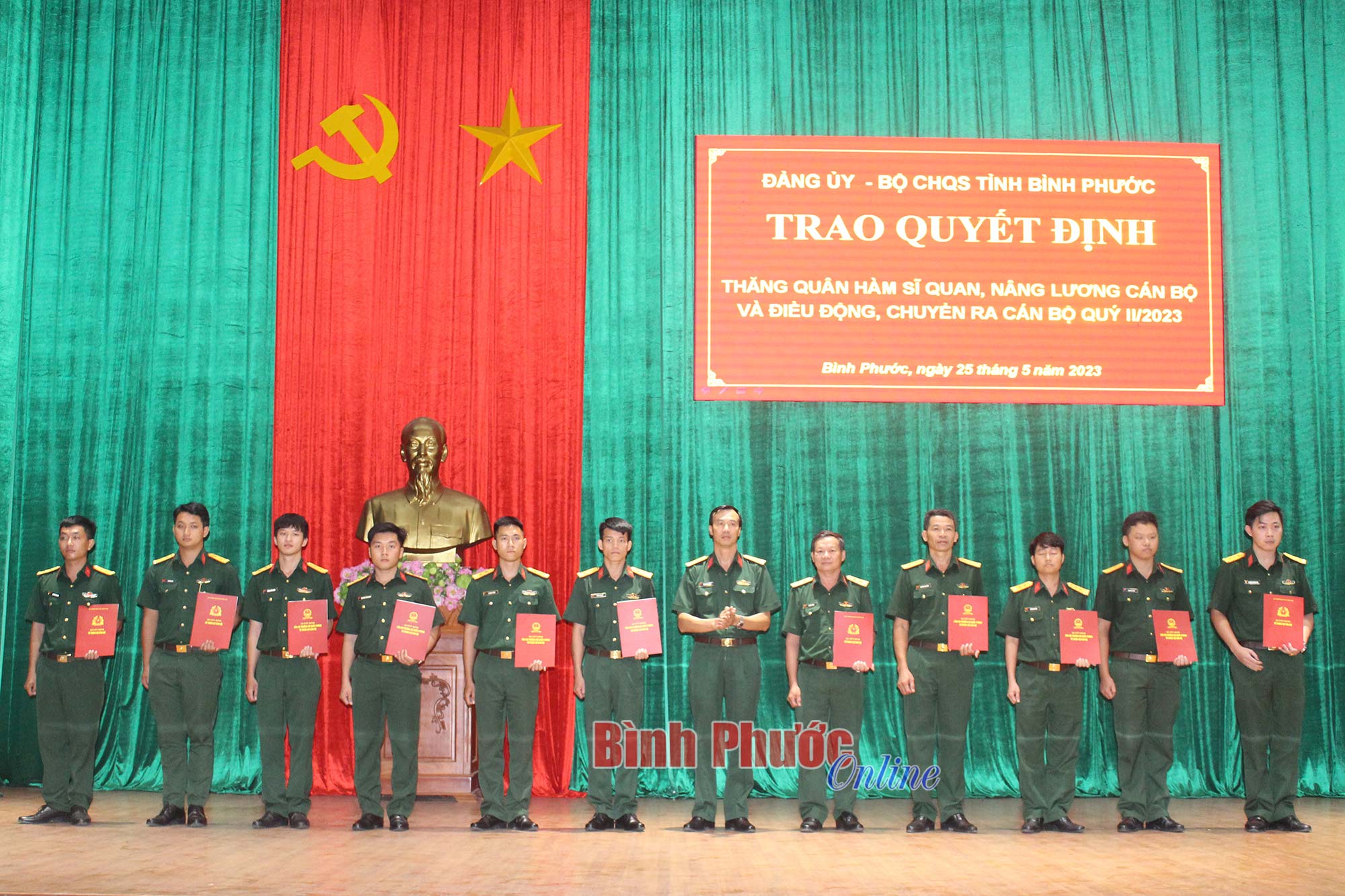 Phát biểu tại buổi trao quyết định, Đại tá Phạm Như Quân, Phó Bí thư Thường trực Đảng ủy Quân sự tỉnh, Chính ủy Bộ CHQS tỉnh nhấn mạnh: Các cán bộ được thăng quân hàm lần này là một bước ngoặc đánh dấu sự trưởng thành, khẳng định sự chuyển biến tích cực của cán bộ, khả năng hoàn thành nhiệm vụ trên từng cương vị chức trách được giao. Đảng ủy, Bộ CHQS tỉnh mong muốn mỗi cán bộ tích cực học tập, rèn luyện, phấn đấu, tu dưỡng về phẩm chất, bản lĩnh chính trị, đạo đức, lối sống, tác phong công tác của người cán bộ. Ở mỗi cương vị chức trách, lĩnh vực công tác, từng cán bộ phải luôn gắn bó với tổ chức, cùng tập thể cấp ủy, chỉ huy cơ quan, đơn vị xây dựng tinh thần đoàn kết, thống nhất cao; xây dựng cơ quan, đơn vị vững mạnh toàn diện, xây dựng chi bộ, đảng bộ trong sạch vững mạnh.