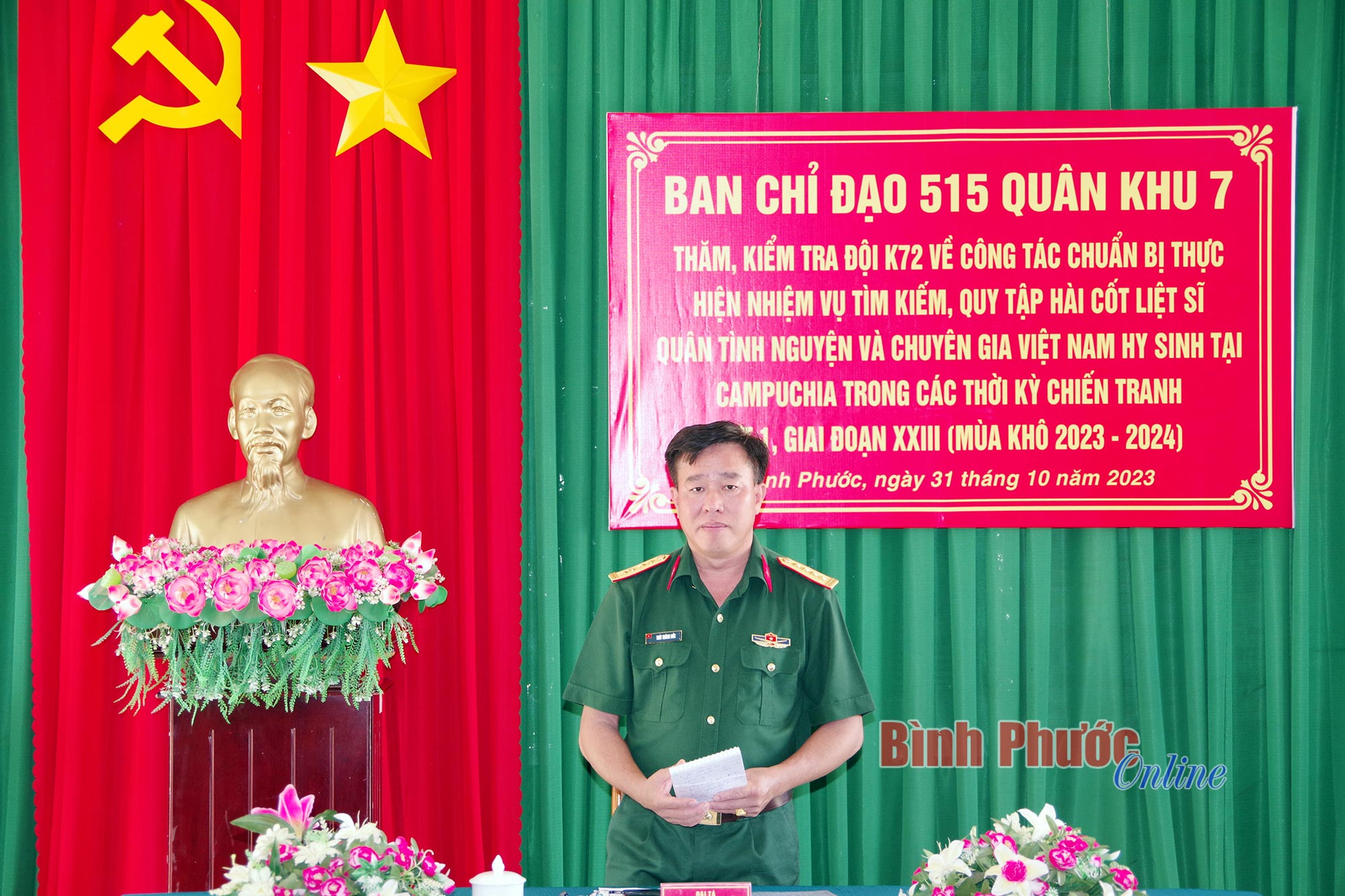 Tại buổi làm việc, Đại tá Thái Thành Đức ghi nhận và biểu dương thành tích Đội K72 đạt được trong thời gian qua. Ban chỉ đạo 515 Quân khu 7 sẽ hỗ trợ thêm về vật chất, y tế, trang bị, kỹ thuật cho đội. Đồng thời, Đại tá Thái Thành Đức chỉ đạo cán bộ, nhân viên Đội K72 trong quá trình thực hiện nhiệm vụ cần giữ vững mối đoàn kết, hữu nghị, tôn trọng phong tục, tập quán của nhân dân nước bạn, phối hợp chặt chẽ với Ban chuyên trách tỉnh bạn, tuyên truyền sâu rộng trong nhân dân địa phương nhằm thu thập thêm thông tin mộ liệt sĩ, xây dựng quyết tâm cao, thi đua hoàn thành xuất sắc nhiệm vụ.