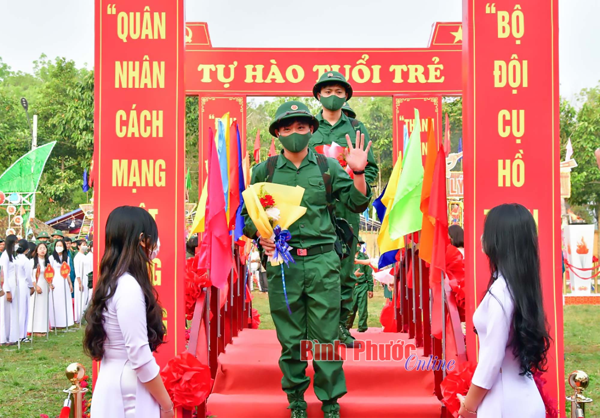 Đi bộ đội là quyền và nghĩa vụ cao quý của công dân. Trong ảnh: Thanh niên Bình Phước hăng hái lên đường nhập ngũ năm 2023