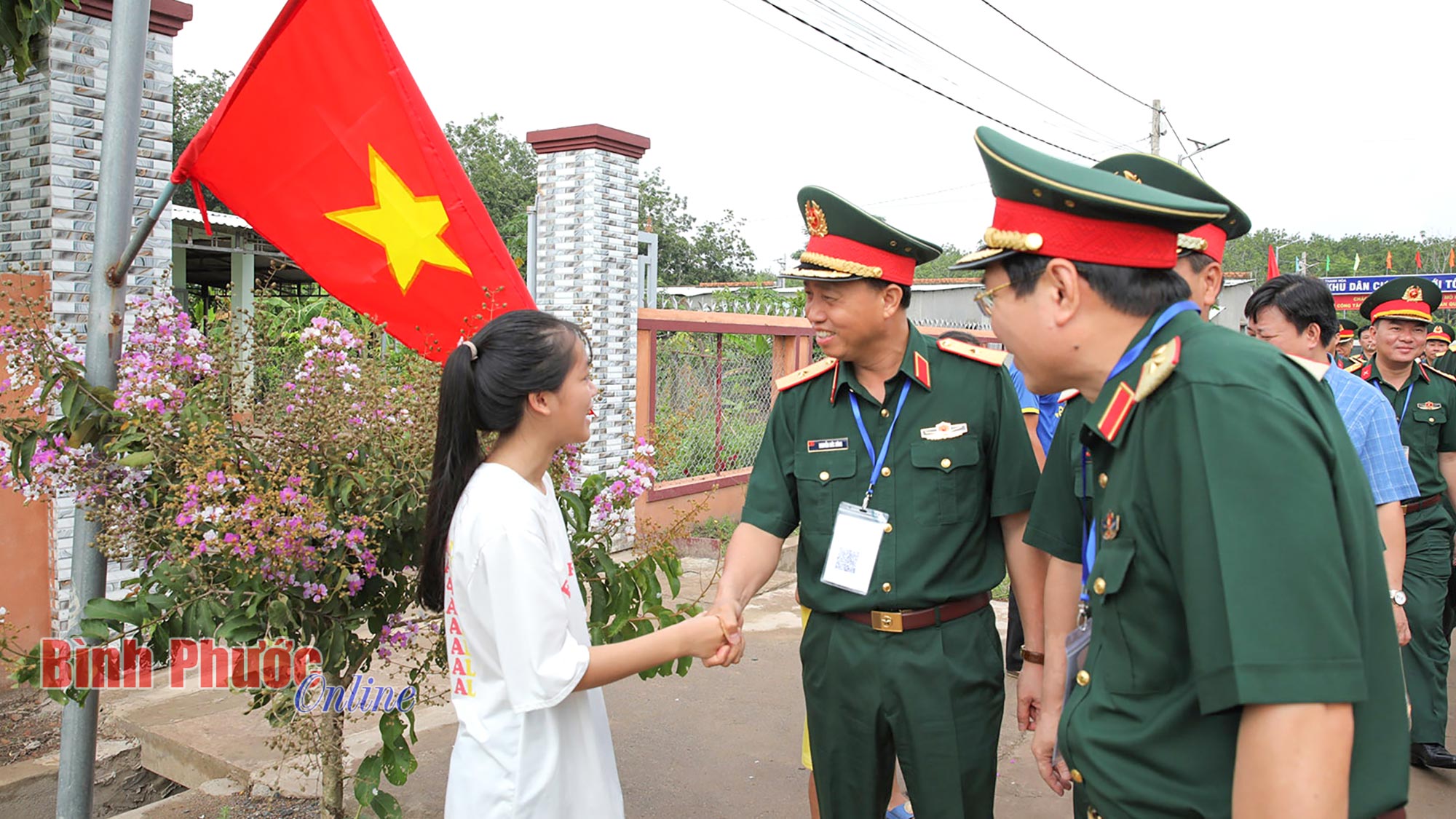 Lãnh đạo Bộ Quốc phòng và Quân khu 7 thăm hỏi đời sống người dân trong khu dân cư biên giới tổ 10, ấp 3, xã Thanh Hòa, huyện Bù Đốp - Ảnh: Trương Hiện