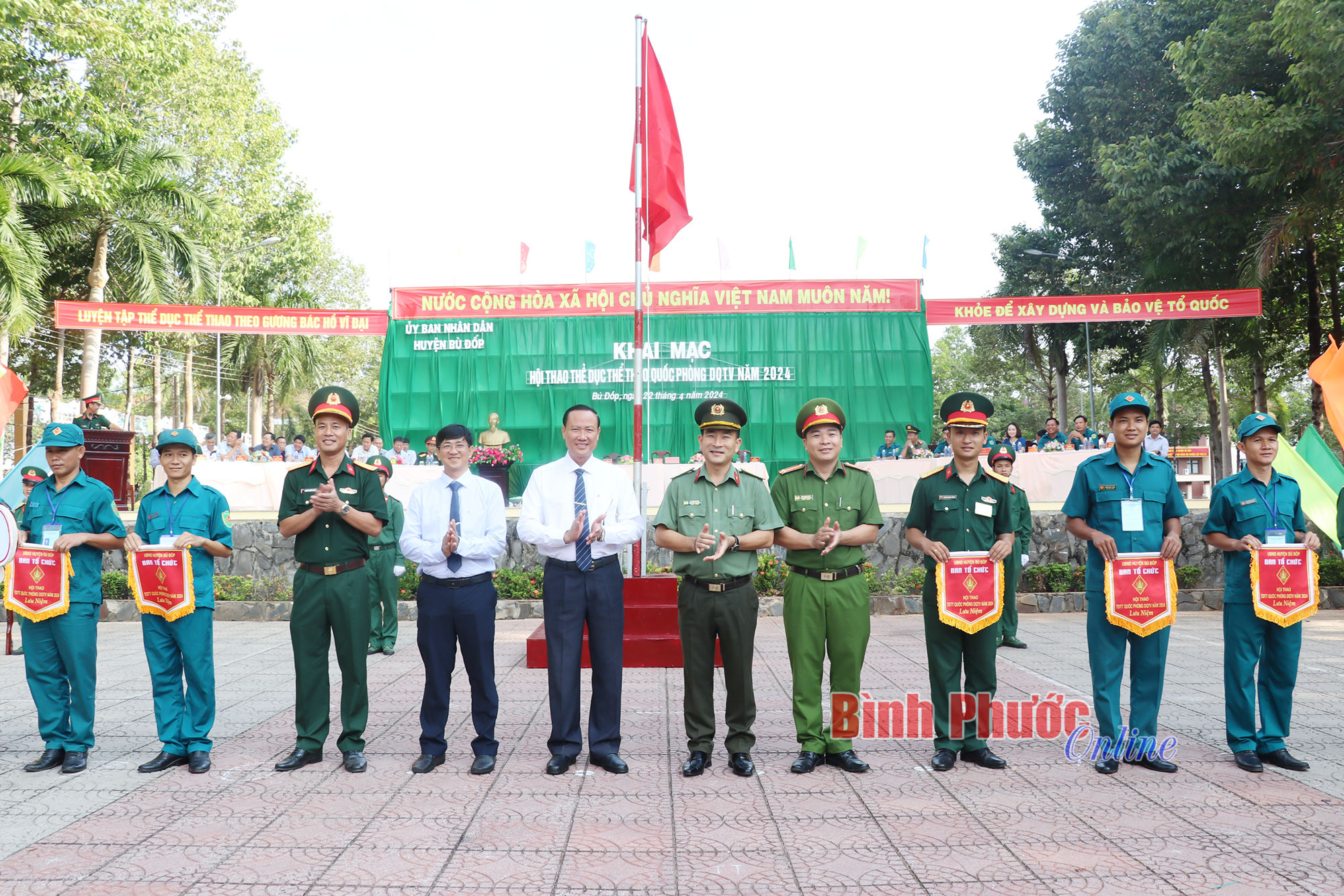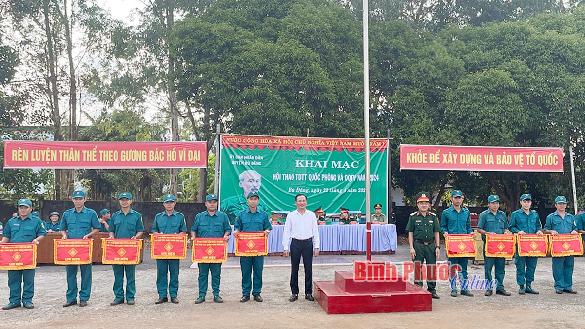 * UBND huyện Bù Đốp sáng 22-4 cũng đã tổ chức khai mạc hội thao thể dục thể thao quốc phòng dân quân tự vệ năm 2024.