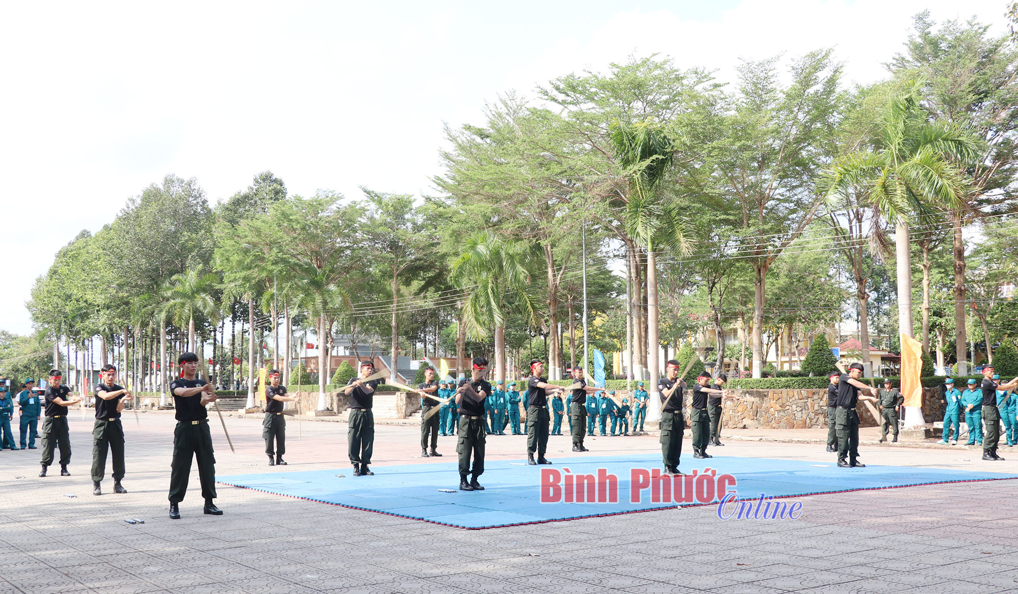 * Sáng 22-4, UBND thành phố Đồng Xoài cũng đã tổ chức hội thao quốc phòng và dân quân tự vệ năm 2024. Hơn 200 vận động viên là cán bộ, chiến sĩ dân quân tự vệ đến từ Ban chỉ huy quân sự 8 xã, phường của thành phố Đồng Xoài tham gia.