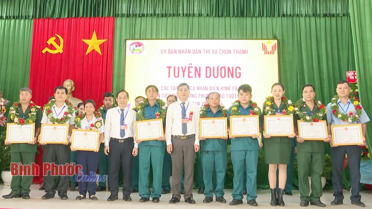 Kết quả phong trào thi đua quyết thắng giai đoạn 2019-2024, LLVT thị xã Chơn Thành vinh dự được Bộ Quốc phòng tặng bằng khen năm 2022, Bộ Tư lệnh Quân khu 7 tặng danh hiệu “Đơn vị quyết thắng” các năm 2020, 2021, 2022; 98 lượt tập thể, 176 lượt cá nhân được các cấp khen thưởng.